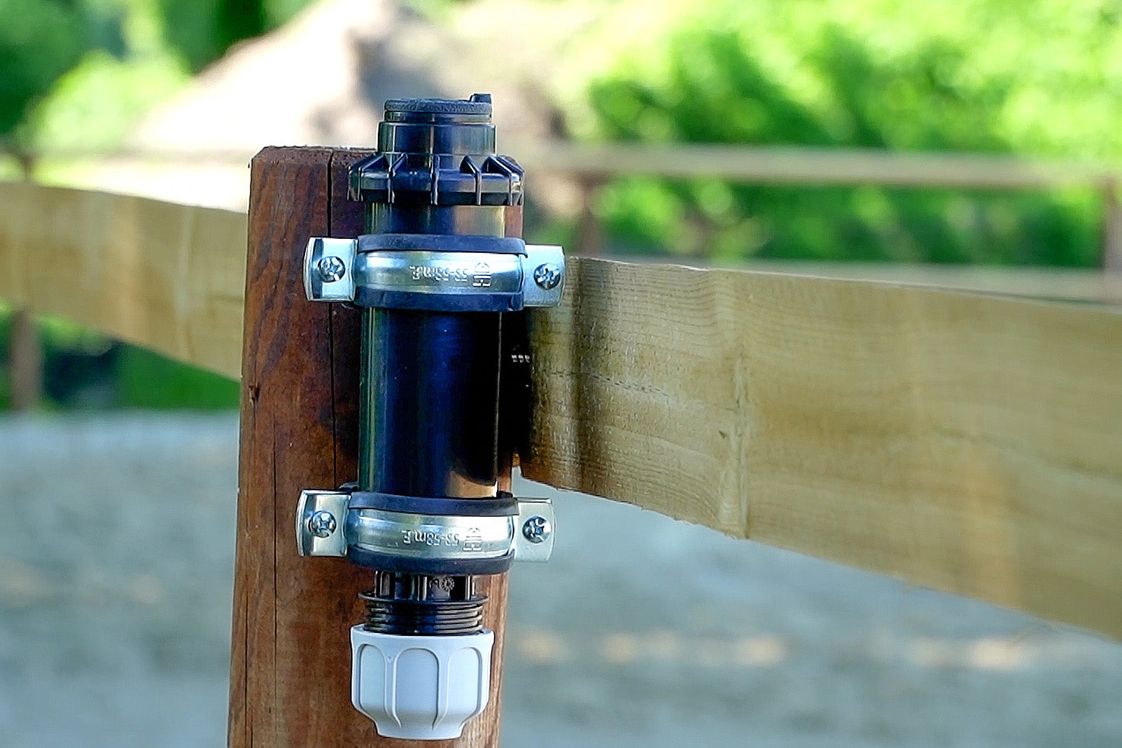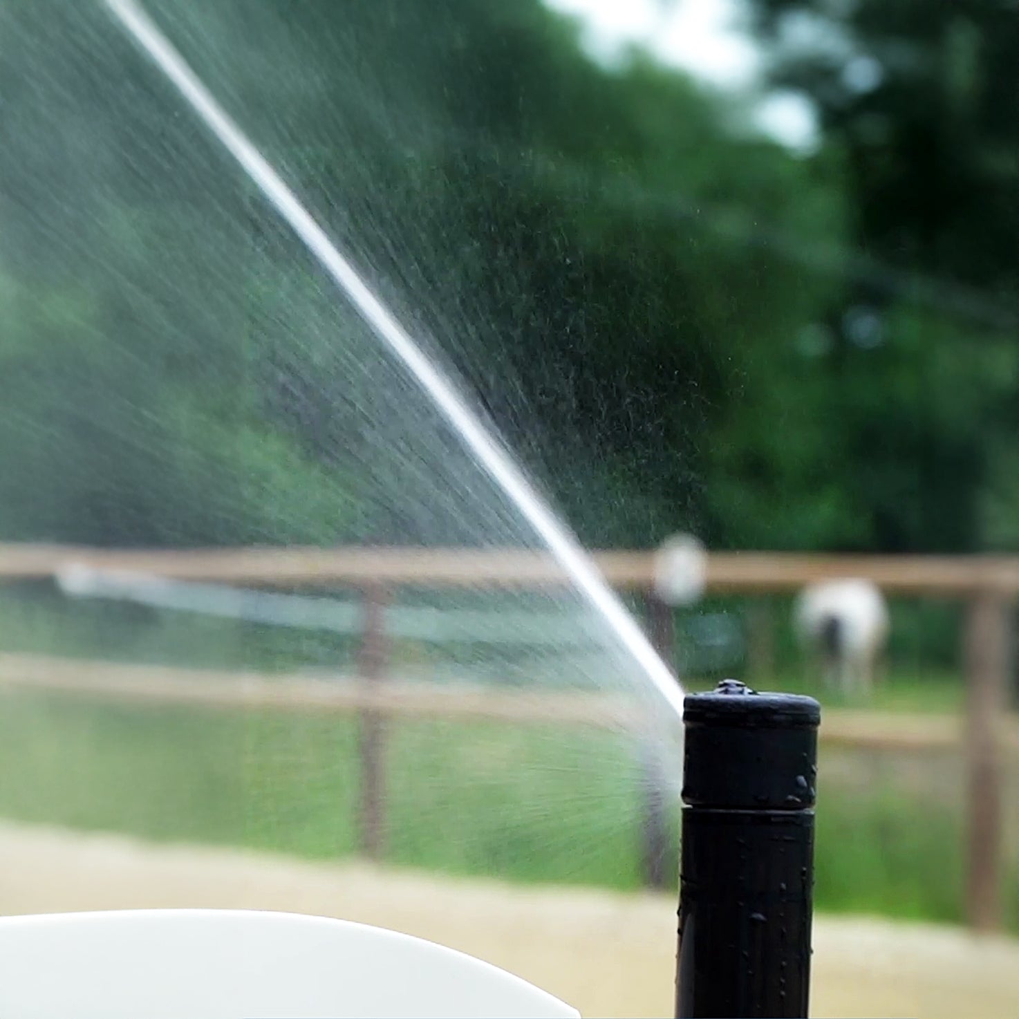 Das Wetman Station FLEX Paket ist eine komplette Bewässerungslösung für Reitplätze und Reithallen in der Größe 20 x 40 m. Bei einem Wasserdruck von ca. 3,5 bar liefert die Anlage mit 2,4 m³/h zuverlässig die benötigte Wassermenge.